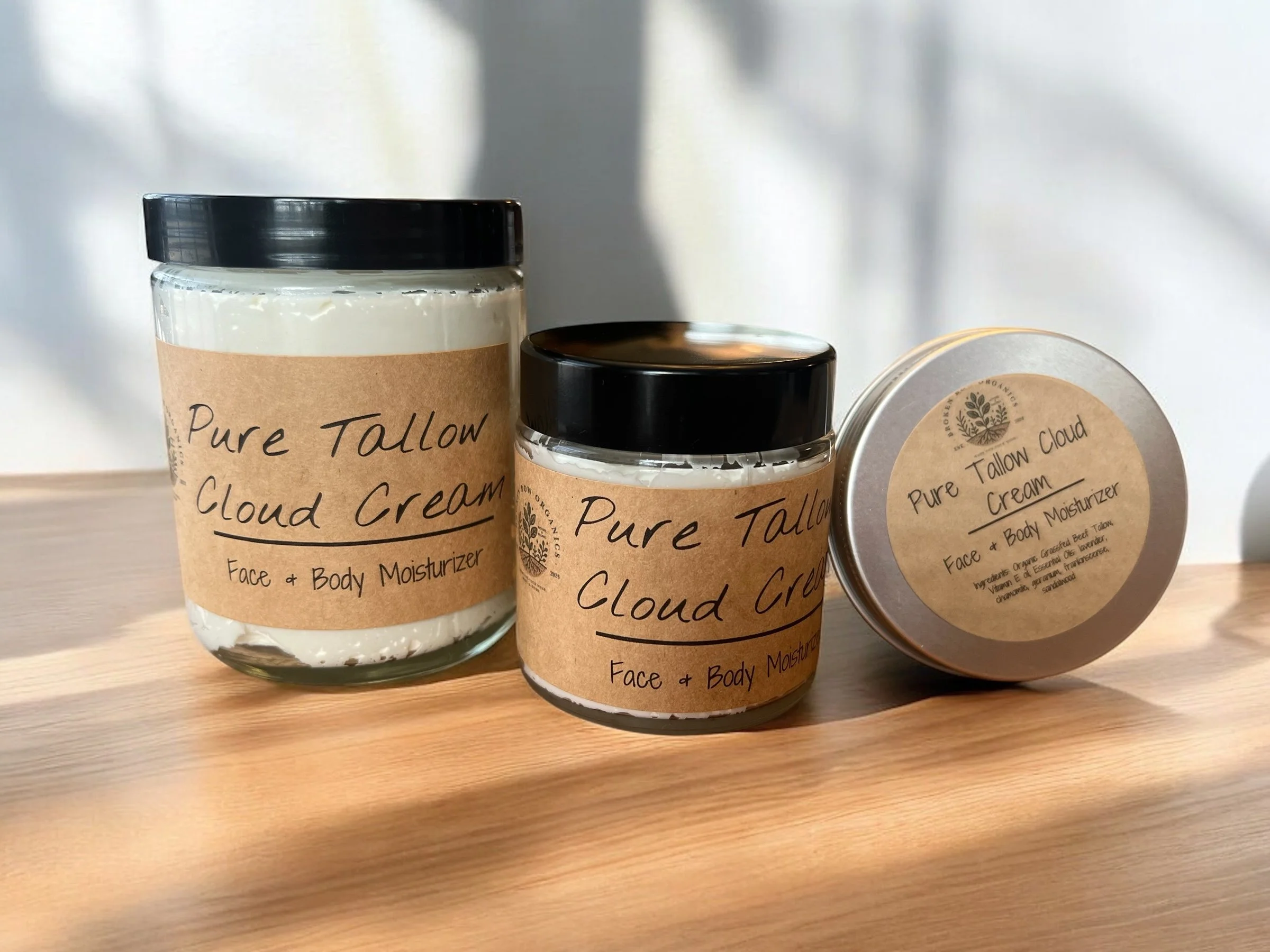 Nourish and rejuvenate your skin with our Pure Tallow Cloud Cream - Face and Body Moisturizer. This ultra-hydrating cream blends grass-fed organic beef tallow with the skin-loving benefits of vitamin E oil, offering deep moisture to both your face and body, leaving your skin feeling soft, smooth, and deeply nourished.