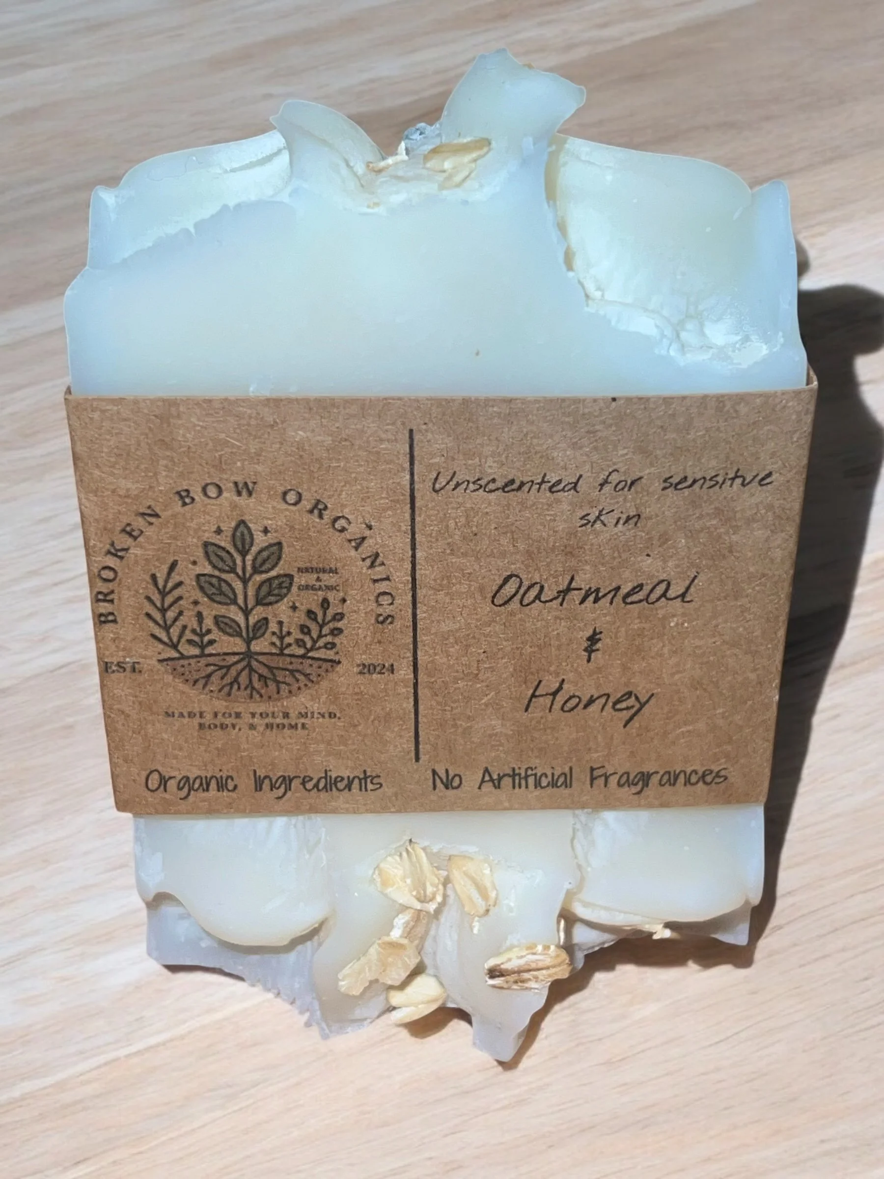 Gentle, nourishing, and perfect for sensitive skin, our Oatmeal & Honey Tallow Soap is a soothing choice for anyone seeking a natural skincare solution. Handcrafted with care, this soap combines the creamy lather of organic tallow and coconut oil with the moisturizing benefits of cold-pressed castor oil.